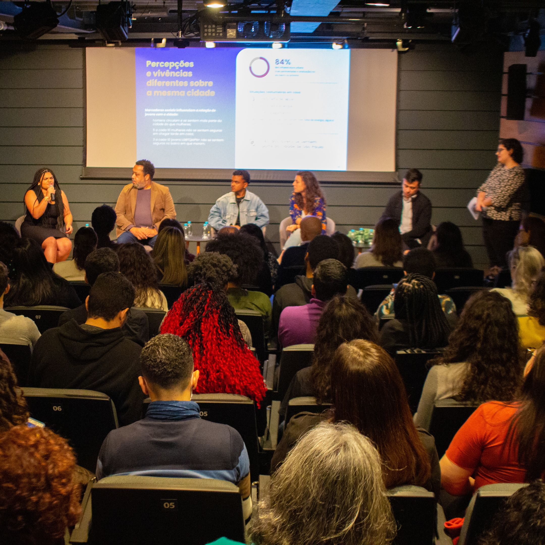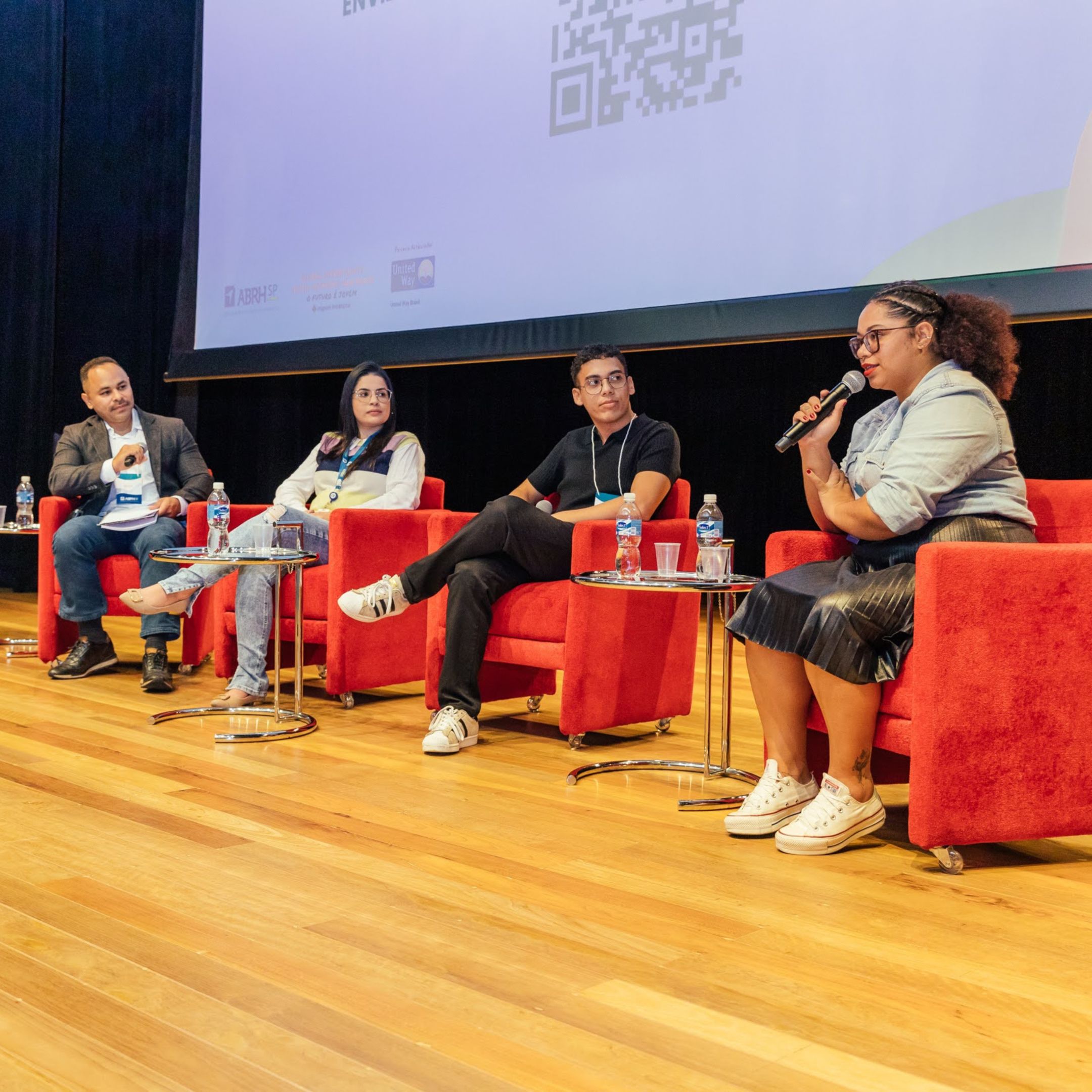 Realizado em abril, o “Fórum ESG: Desafios e oportunidades para a inclusão produtiva de jovens-potência” teve o propósito de sensibilizar cerca de 100 lideranças corporativas, da área de recrutamento e seleção, sobre a importância do diálogo e da busca por soluções que promovam a inclusão produtiva das juventudes de São Paulo. O evento foi realizado em parceria com a ABRH SP, com patrocínio da ALIBRAS, Prosper e Transcendemos e apoio do CIEE. Na ocasião, lançamos o projeto Elevado à Potência, desenvolvido pela Accenture. A ação é uma imersão social no território onde o jovem-potência mora, estuda e/ou trabalha, com dinâmicas para promover a troca de experiências e percepções entre jovens e executivos, com oportunidades de desenvolvimento mútuo. Saiba mais.
