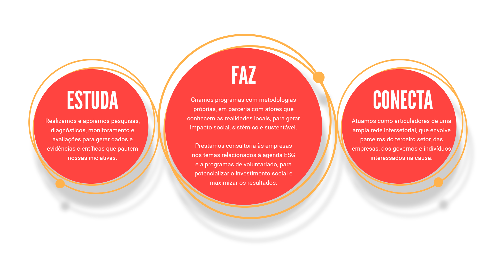 A primeira infância (0 a 6 anos), as juventudes e o voluntariado empresarial são as nossas três áreas de atuação para cumprir nossos objetivos. É dessa forma que contribuímos para o enfrentamento das desigualdades sociais, tendo a metodologia Impacto Coletivo como suporte às articulações que realizamos, formando amplas coalizões com diferentes setores.